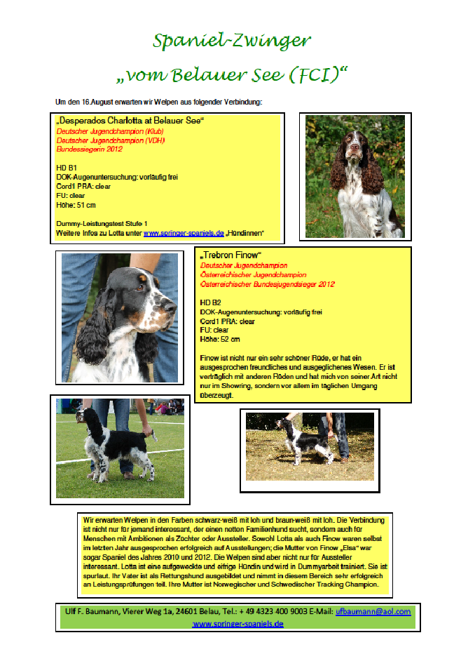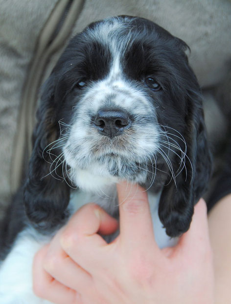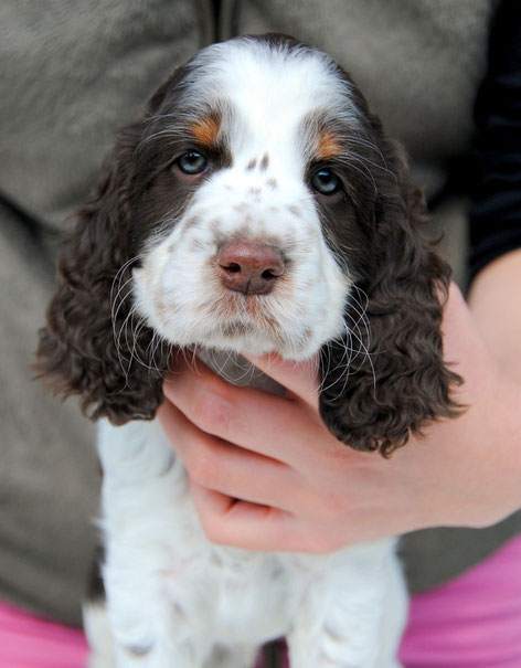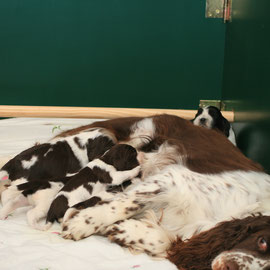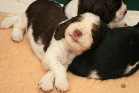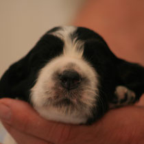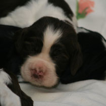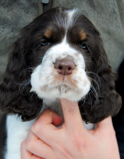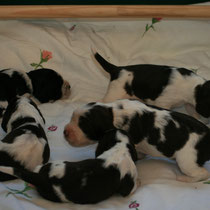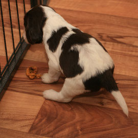 Isolde is the only black/white/tan girl. She is a rather big bitch and quite strong. She will live in Detmold, Germany with two older Springers.