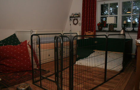 The puppies start to get more and more alive! We build a small kennel in front of the whelping box so that the puppies have more space to play and walk around.